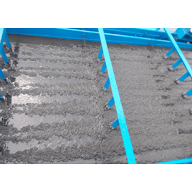 在三網(wǎng)濃縮脫水機的基礎(chǔ)上針對洗砂廠污泥特點進行技術(shù)創(chuàng)新,增加預處理沉淀塔、滾軸的加強、整機機身加長、網(wǎng)帶增加至4條。實現(xiàn)洗砂出泥量大連續(xù)運轉(zhuǎn)的特點。