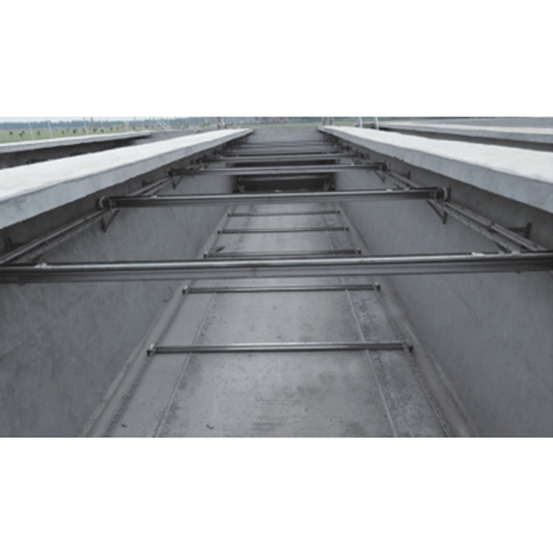 該設備適用于平流沉淀池及隔油池的集泥、排泥、除砂、除渣、除油。本機由驅動裝置、傳動鏈條與鏈輪、牽引鏈與鏈輪、刮板、導向輪、漲緊裝置、鏈輪軸、導軌支架等組成。鏈板式刮油刮泥機應用于煉油廠,水廠或污水處理廠的沉淀池,沉砂池,隔油池等矩形池的撇浮油,浮渣和刮泥砂。
