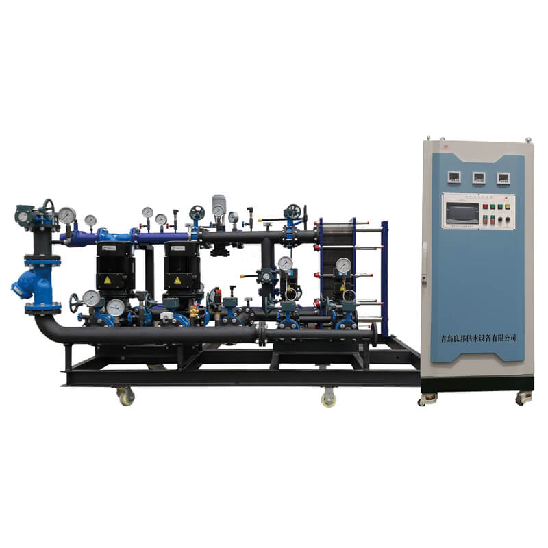 青島良邦板式換熱機組是根據工況需求、隨氣象條件的變化,由中心控制器實現對一二次熱網的智能控制,然后實現供熱量與實際熱負荷的平衡。它是集城鎮集中供熱(采曖、空調、生活用熱水)理想的熱交換設備。該機組是由板式換熱器,循環泵.補水泵,除污器,管道,閥門,儀表,變頻控制系統等組成。根據用戶需要可加配電子除垢儀和全自動編程系統。本機組具有傳熱效率高.阻力小,結構緊湊,運行可靠,操作簡便直觀等優點,是卓效節能產品。